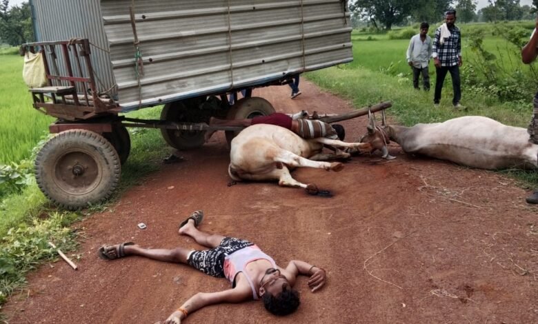 बालाघाट। किरनापुर तहसील अंतर्गत ग्राम पंचायत खारा मार्ग पर दिनांक 8.9.2024 को बालाघाट से गोंदिया हाईवे रोड़ पर स्थित सालेटेका – मर्री रोड़ के सामने वाली रोड़ जो लगभग 2 कि.मी अन्तर से खारा पंहुचती है जहां पर लगभग समय 5 बजे के करीब तीन व्यक्ति बैल गाड़ी से एक टीन के ठेले को बनवाकर बालाघाट से खारा ले जा रहे थे। उसी वक्त सड़क पर 1100 के बी लटकती बिजली के तार को लकड़ी से उठाकर बैल गाड़ी को पार कर रहे थे कि अचानक लकड़ी टुटने से बिजली की तार ठेले से टकरा गई और मौके पर दो व्यक्ति और बैल जोड़ी कि मौके पर मौत