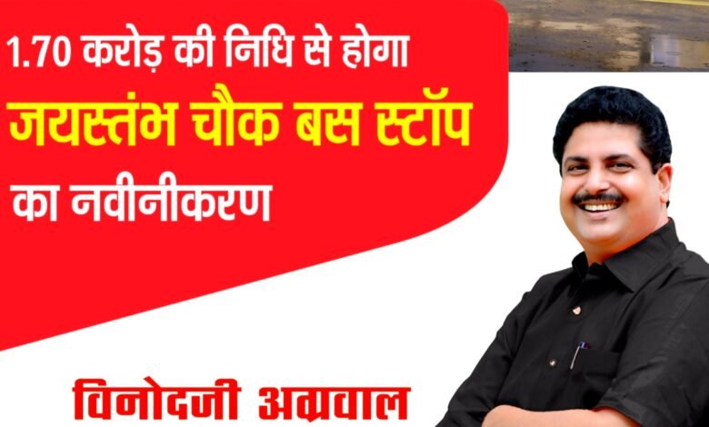 शहरवासियों की वर्षों पुरानी मांग को मिला न्याय, सर्व सुविधाओं से युक्त बनेगा बस स्टॉप। विधायक विनोद अग्रवाल की पहल से 1 करोड़ 70 लाख की लागत से होगा जयस्तंभ चौक बस स्टैंड का अत्याधुनिक रूप में सुशोभीकरण!