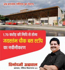 अब इस दिशा में ऐतिहासिक कदम उठाते हुए, विधायक विनोद अग्रवाल के अथक प्रयासों से 1 करोड़ 70 लाख रुपयों की लागत से जयस्तंभ चौक बस स्टॉप के सुशोभीकरण का कार्य प्रारंभ होने जा रहा है। यह न केवल एक इंफ्रास्ट्रक्चर परियोजना है, बल्कि शहर के जनजीवन की गुणवत्ता को नए आयाम देने वाला परिवर्तन है।