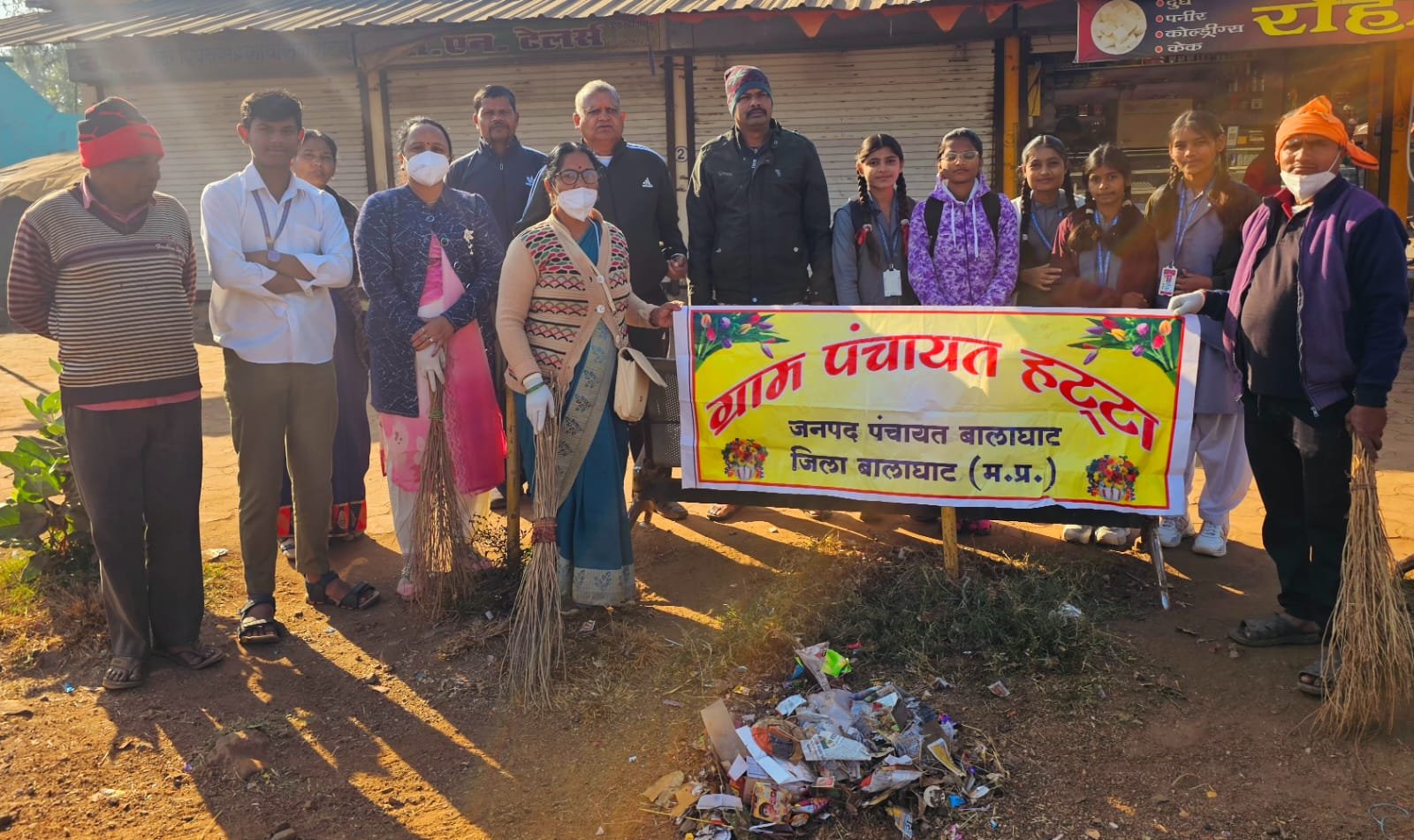 बालाघाट:- ग्राम पंचायत हट्टाजनपद पंचायत बालाघाट, बिना रुके बिना थके अनवरत रूप से संचालित साप्ताहिक स्वच्छता अभियान 28 दिसंबर, सप्ताह के अंतिम रविवार को पुलिस विभाग के सहयोग से ग्राम के मुख्य हाईस्कूल चौक में सफाई करके जनता को स्वच्छता का संदेश दिया गया।