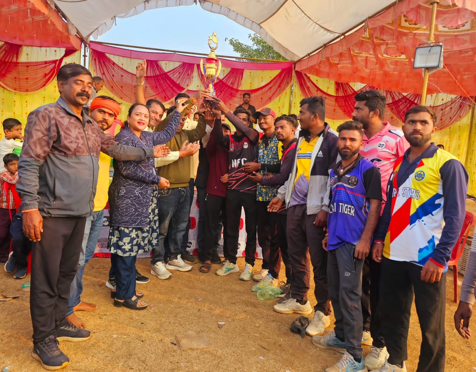 इस अवसर पर उपस्थित सरपंच उमेश सोनेकर, उप सरपंच वीरेंद्र बिसेन, गुड्डा मरकाम, राजू बुर्रे, पिछोडे सहायक सचिव मंगलेश माहूले, और समस्त ग्राम के गणमान्य नागरिकों की ओर से टीम के कप्तान अभिषेक सोनी और बंटी बागड़े को जीत की शुभकामनाये देकर जीत की खुशी में शामिल हुए।