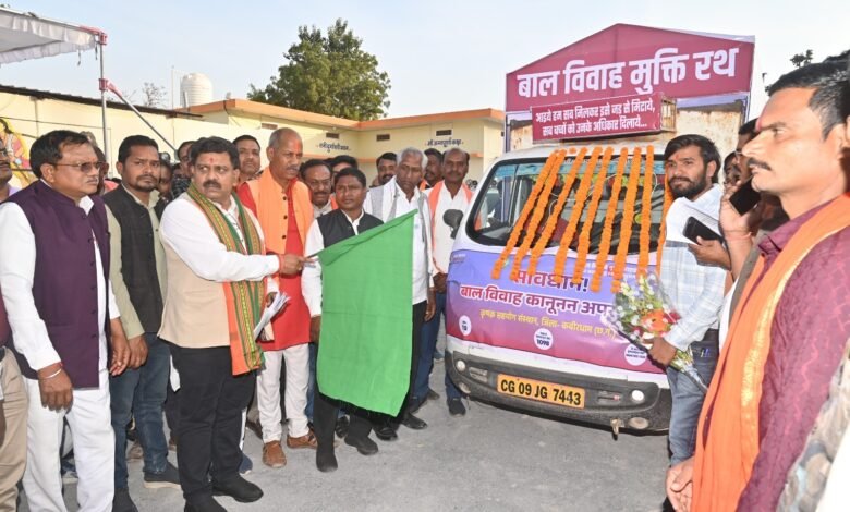 कवर्धा, 30 जनवरी 2026। उप मुख्यमंत्री श्री विजय शर्मा ने हिन्दू संगम बोड़ला परिसर से बाल विवाह मुक्ति रथ को रवाना किया। यह जागरूकता रथ क्षेत्र में बाल विवाह मुक्त भारत के संदेश जन जन तक पहुंचाएगा। जिसके तहत बाल विवाह के कानूनी प्रावधानों तथा इसमें लिप्त लोगों के लिए सजा के प्रावधान से अवगत कराएगा। इस अवसर पर श्री नितेश अग्रवाल, जनपद अध्यक्ष श्रीमती बालका रामकिंकर वर्मा, जनपद उपाध्यक्ष श्री नन्द श्रीवास, जिला पंचायत सभापति डॉ वीरेंद्र साहू, जिला पंचायत सदस्य श्री रूपसिंह धुर्वे, नगर पंचायत अध्यक्ष विजय पाटिल, सभापति मनीराम साहू, श्री मोहन धुर्वे, श्री बरसाती राम, श्री कांशीराम उइके, कार्यक्रम प्रबंधक सत्यप्रकाश साहू उपस्थित रहे।